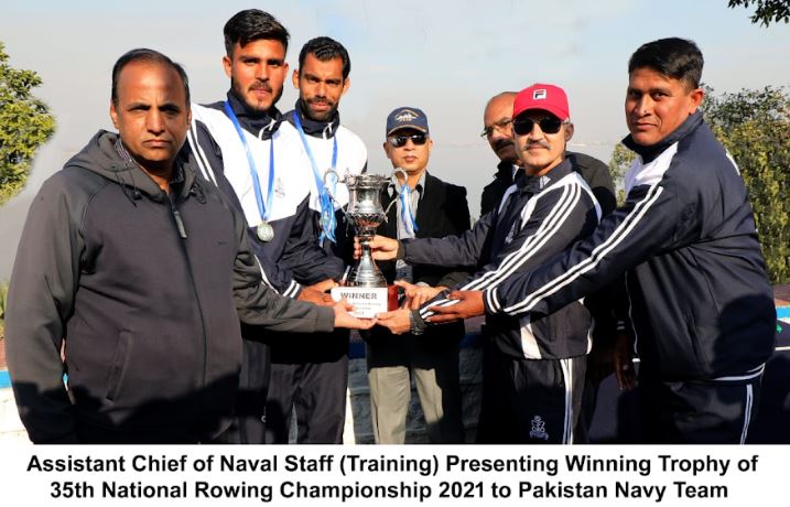 Islamabad, 19 /DNA/ – Pakistan Navy wins 35th National rowing championship after 9 years. The Closing Ceremony of National Rowing Championship under auspices of Pakistan Navy was held at Rawal Lake. Teams from Pakistan Navy, Pakistan Army, WAPDA, Punjab, Islamabad Club and Pakistan Police participated in the championship.