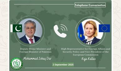 ISLAMABAD, SEPT 2 /DNA/ – Deputy Prime Minister/Foreign Minister, Senator Mohammad Ishaq Dar @MIshaqDar50, today received a call from EU High Representative/Vice President, Kaja Kallas @KajaKallas.