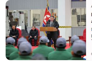 Images released by Pyongyang showed a stern-looking Kim delivering a speech at the venue in South Hamgyong Province in the country’s frigid northeast, with workers in attendance wearing green uniforms and matching grey hats.